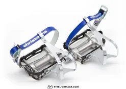 Camapgnolo Record Pedals from late 1970s with Cages (Size S) and Christophe leather leather straps.